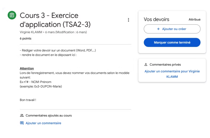 Les exercices d’application sont conçus pour favoriser la mise en pratique des connaissances acquises et approfondir la compréhension des concepts abordés dans les vidéos de cours. Ils peuvent être réalisés plusieurs fois.
