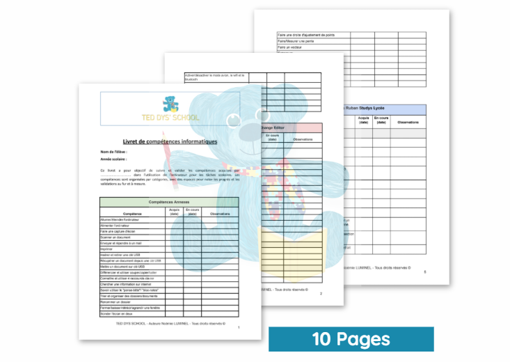 Conçu pour les élèves à besoins éducatifs particuliers (TSA, TDAH, DYS...), il permet de suivre et de valider pas à pas l’acquisition des compétences numériques nécessaires à une intégration réussie de l'ordinateur/outil informatique pédagogique.