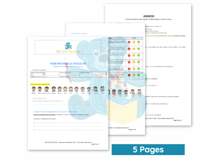 Cette fiche est un outil structuré d’accompagnement Snoezelen destiné aux élèves présentant des troubles du neurodéveloppement (TND). Elle permet de préparer, observer et analyser précisément une séance, dans une démarche bienveillante, non normative et centrée sur le vécu de l’enfant.